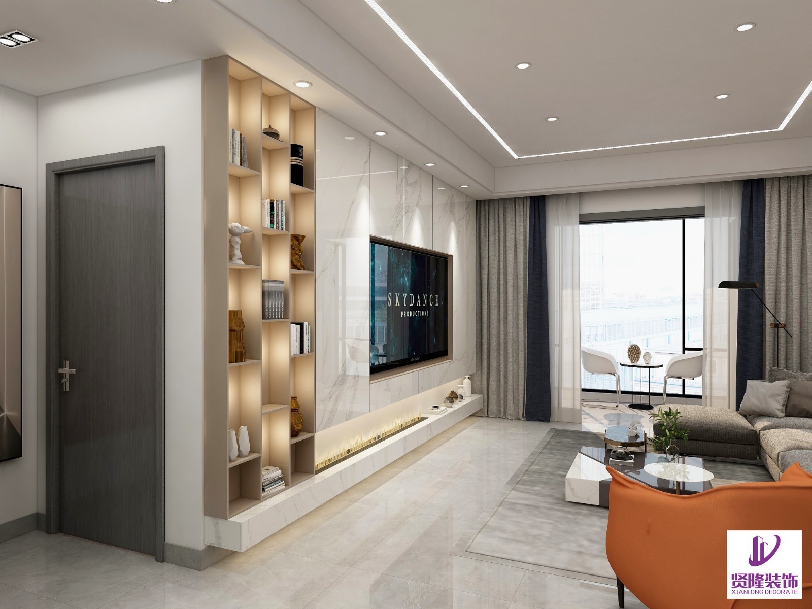 进入客厅后,简约轻奢的调性扑面而来,大面积的采光照亮了客厅区域,空间雅致、温润,绿植的点缀令空间更为活跃和清新。