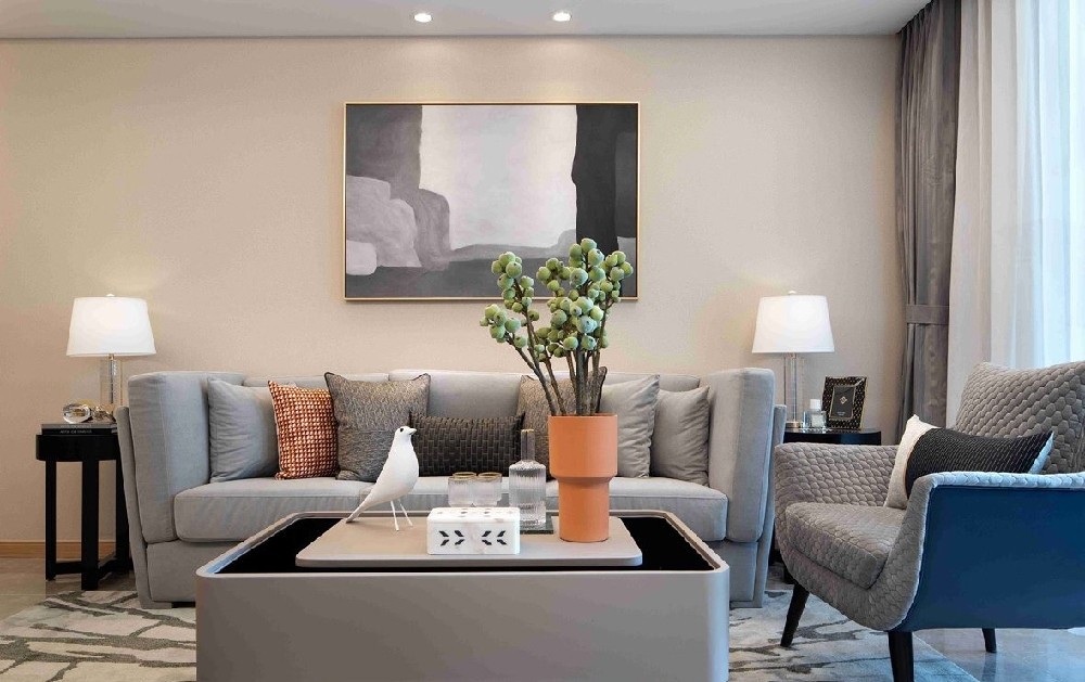 客厅将设计的元素,色彩,照明及艺术品简化到了一个合适的程度,达到一个以简胜繁的效果,简约而不简单。