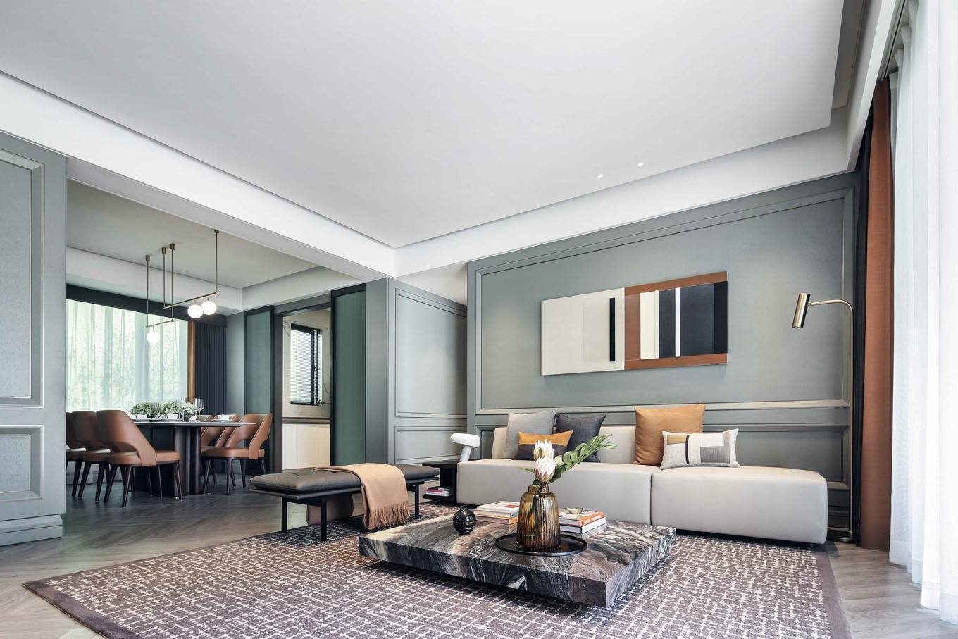 原木搭配***灰,低调而充满逼格。内嵌式的背景墙设计个性十足。
