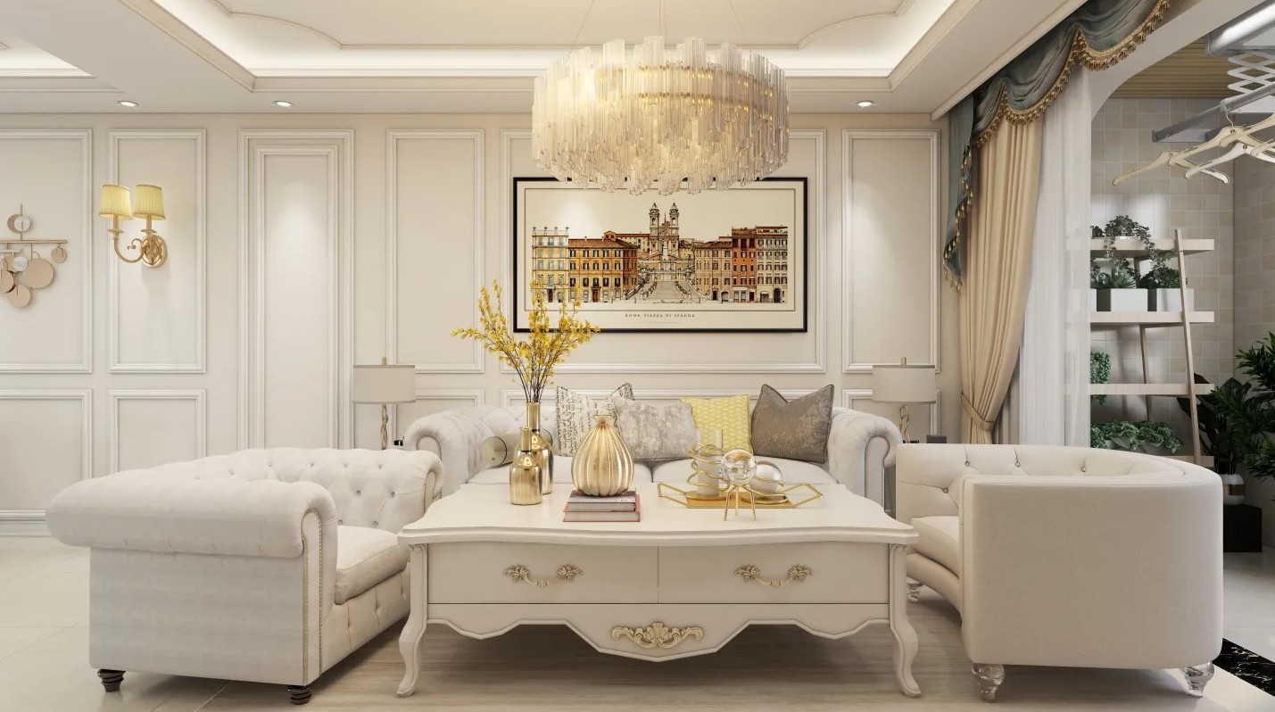 从玄关进来,能看到客厅的全貌,由柔和的米色主打的整个空间,纯净、淡雅。
