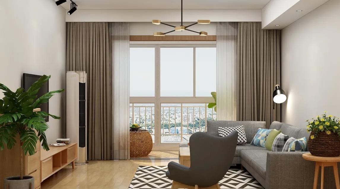 大面积的落地窗设计,增加了客厅的采光度