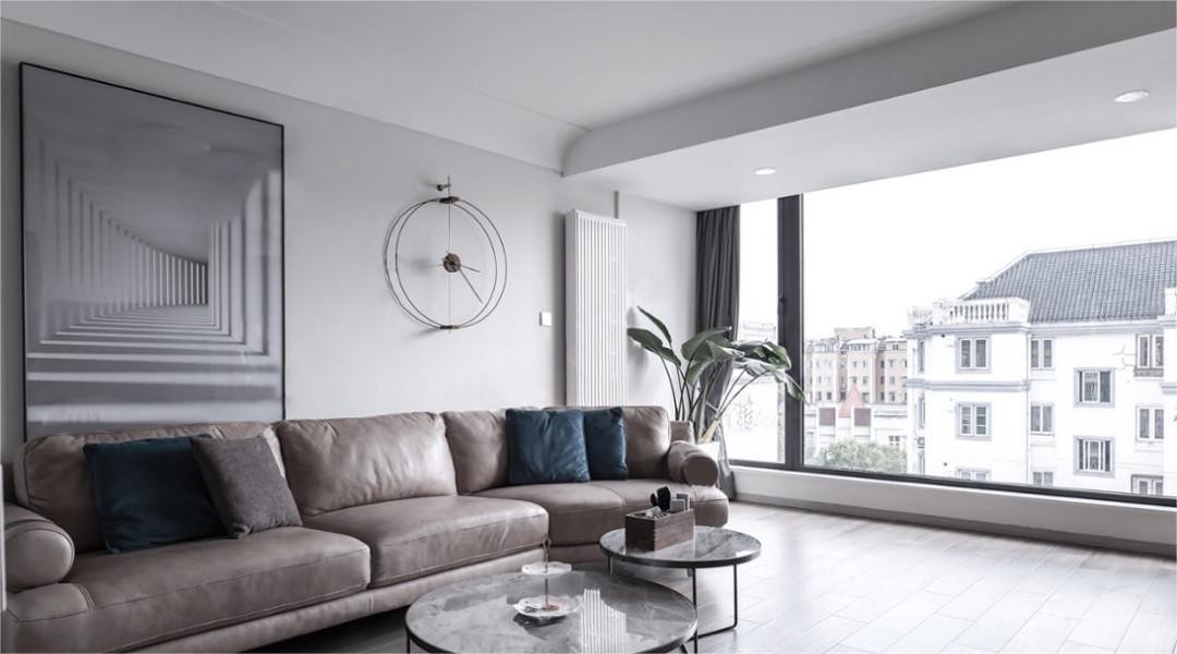 原南阳台跟客厅完全打通,并通过弧面吊顶弱化横梁,把阳台的整个空间很好的融合在客厅内,原有的铁艺护栏去掉后并把上下移窗改成超大落地窗,整个客厅的视野瞬间开阔了好几倍,太阳正好的时候业主的老母亲就喜欢搬出小板凳在窗边织毛衣,哈哈~~~我也很喜欢这个落地窗,据业主自己说是小区一户改成了落地窗并被其他装修业主登门拜访的工地。