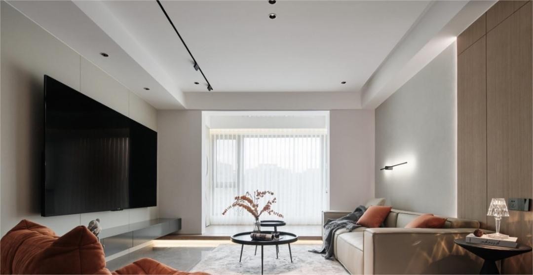 电视背景墙隐形门与沙发墙相呼应,相比实体门,隐形门为空间带来更完整的视觉美感,保障风格结构的统一性