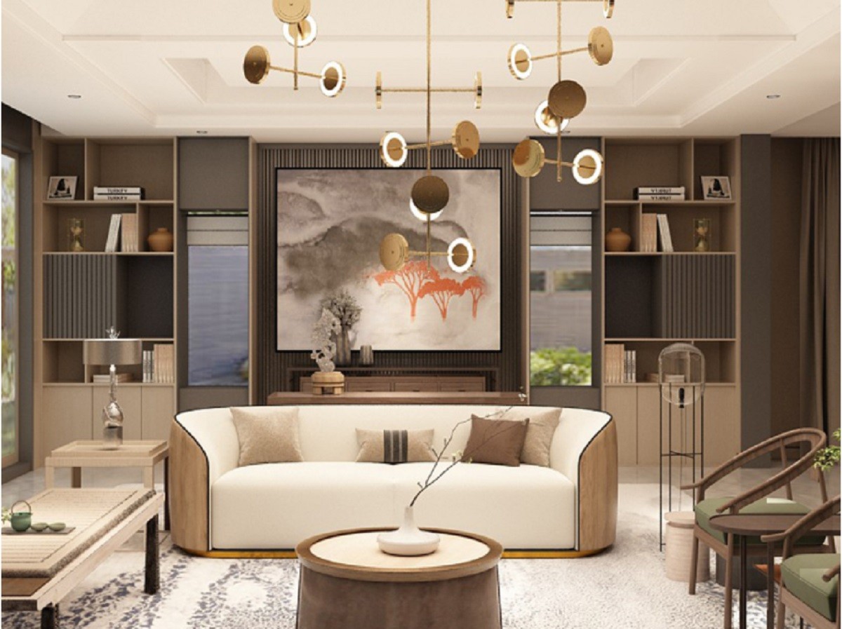客厅的设计主要以简约风格为主,其中加入了现代新中式原始,在设计空间上,介入了一点仪式感。