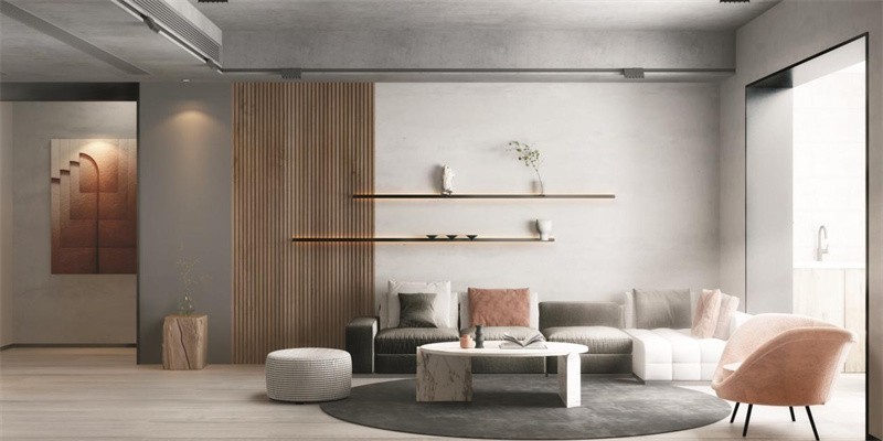 大面积的留白,毕竟是极简风的技能,包含着美学上留白的后现代手法,可当***白与木纹碰撞后,层次更为丰富,格调也比较温馨。在空间上,以脏粉作为局部点缀,真的很亮眼,结合偏长型的客厅格局,配合L型沙发,满足了观看电视之余,还不会错过屋外风景。