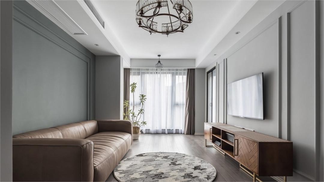 业主一家三口,女儿正处在牙牙学语的阶段。设计师以开放式的空间布局为主,突出空间的联系性,有利于宝宝自由成长,也方便宝爸宝妈随时观察宝宝的状态;风格上,以莫兰迪配色搭配简单的美式线条,营造低调温柔、又充满轻奢质感的家庭氛围。