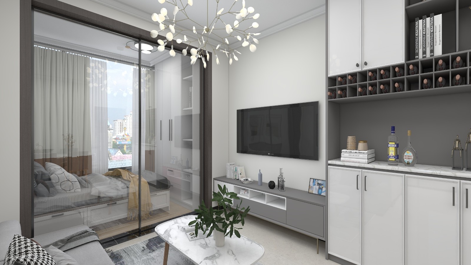 整个空间设计虽然紧凑,但通过恰到好处的家具和饰品的摆设,营造出简洁而舒适的空间环境。