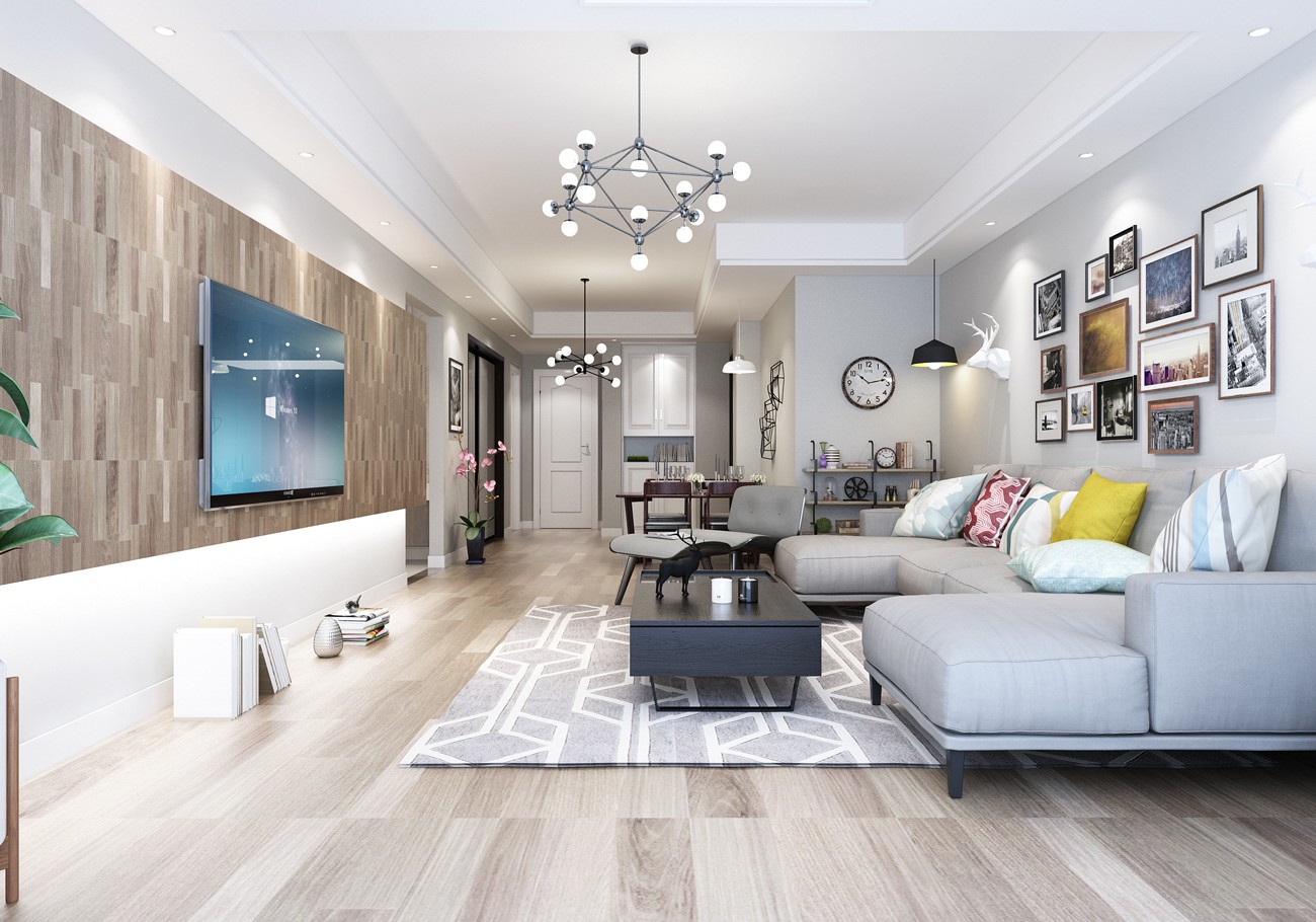 客厅:***灰的墙面大气简约,全无地板干净朴实