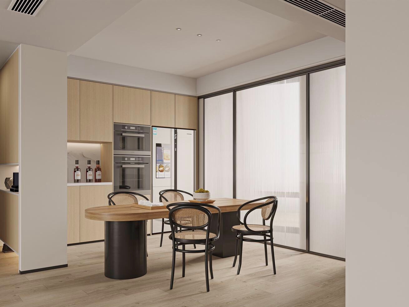 厨房推拉门跟酒水柜一体,更实用,节约空间,