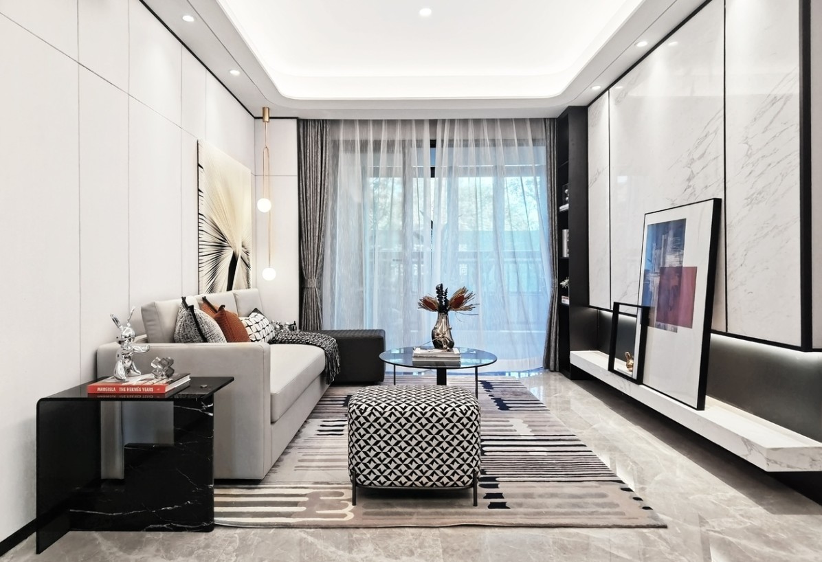越是简单的东西,越是纯粹.白色垂帘透出自然光线 .现代家具营造通透氛围 .以自然返璞归色系为底...