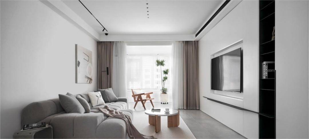 有句话怎么说来着:“生活就是对于愉悦的毫无愉悦的追求。” 客厅没有多余的装饰,让日常的收纳隐藏于电视背景墙之后。简约的钢板造型替代了电视柜,于空间形成整体呼应。顶面的磁吸灯以及落地灯增加了光源与空间的层次。软装的呈现上,一张舒服的沙发搭配点原木色点缀即可。