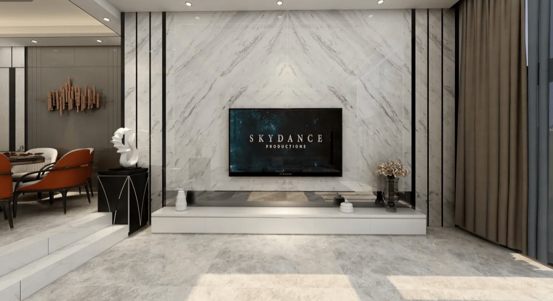背景墙加入了两个简单的黑色长条,让简单的背景墙不再那么单调