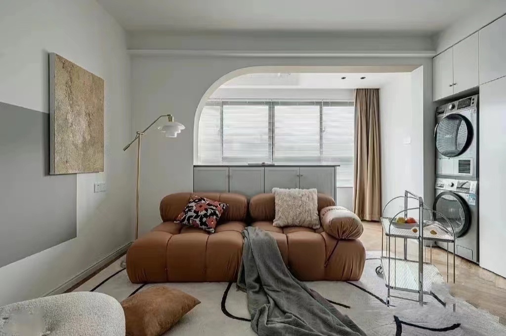 客厅做了弧形的垭口,家具颜色以爱马仕橙衬托整个空间的大气