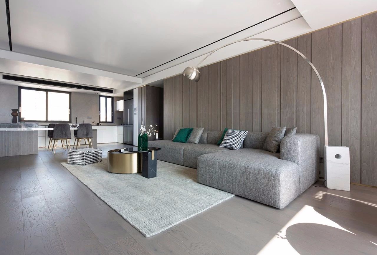 师展现出极简主义的稳重和不失惊艳的韵味,空间宁静的外表下藏着一颗炽热的内心。 通过木质元素的充分运用、***灰调的质感以及扑面而来的轻奢优雅