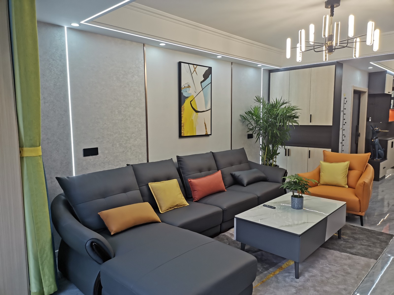 客厅吊顶搭配线型灯,整体效果***