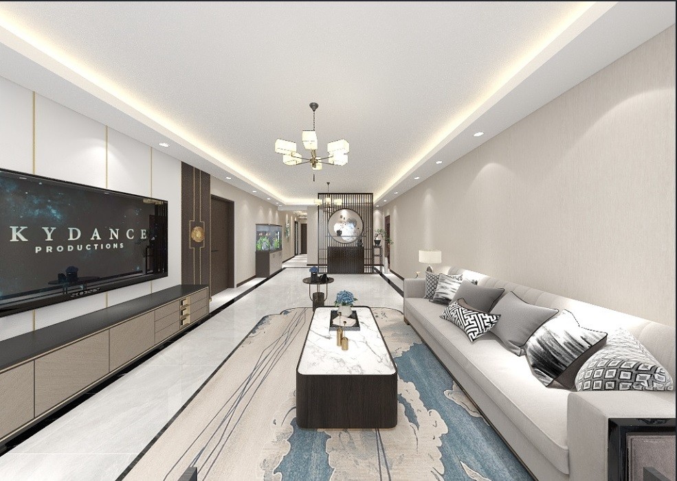 客厅空间布局合理,家具颜色不深,符合现代中式风格