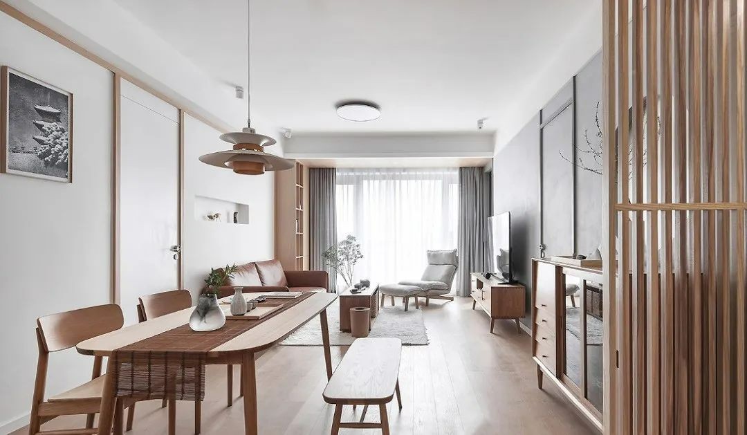 这是一套日式原木风格的装修案例,屋主俩人对自然有着天然的信仰,在家的打造上,并不追求固象、众多元素堆砌起来的风格,而是主张以自然素材为主线贯穿整个设计。