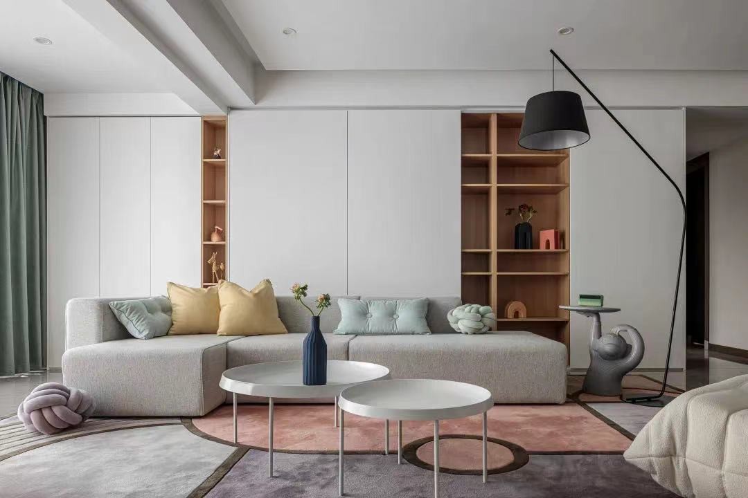客厅与传统设计格局不同,并没有设置电视,主体调性偏于自然,让宝宝在一个自然、放松的环境中快乐成长。客厅特地设计了两组柜子,方便宝宝教具的使用与收纳,采用活动柜体,在格局上富于变化,既可以保证足够的收纳面积,又可以通过变换柜门的位置,维持空间秩序的整洁。