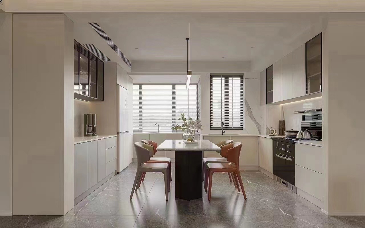 餐厅是一家人一起吃饭的地方,是我们日常生活的重要组成部分。一家人坐在这奶油色调的房子里吃着晚饭,听孩子们讲述着在学校发生的趣事,工作中的劳累瞬间烟消云散。