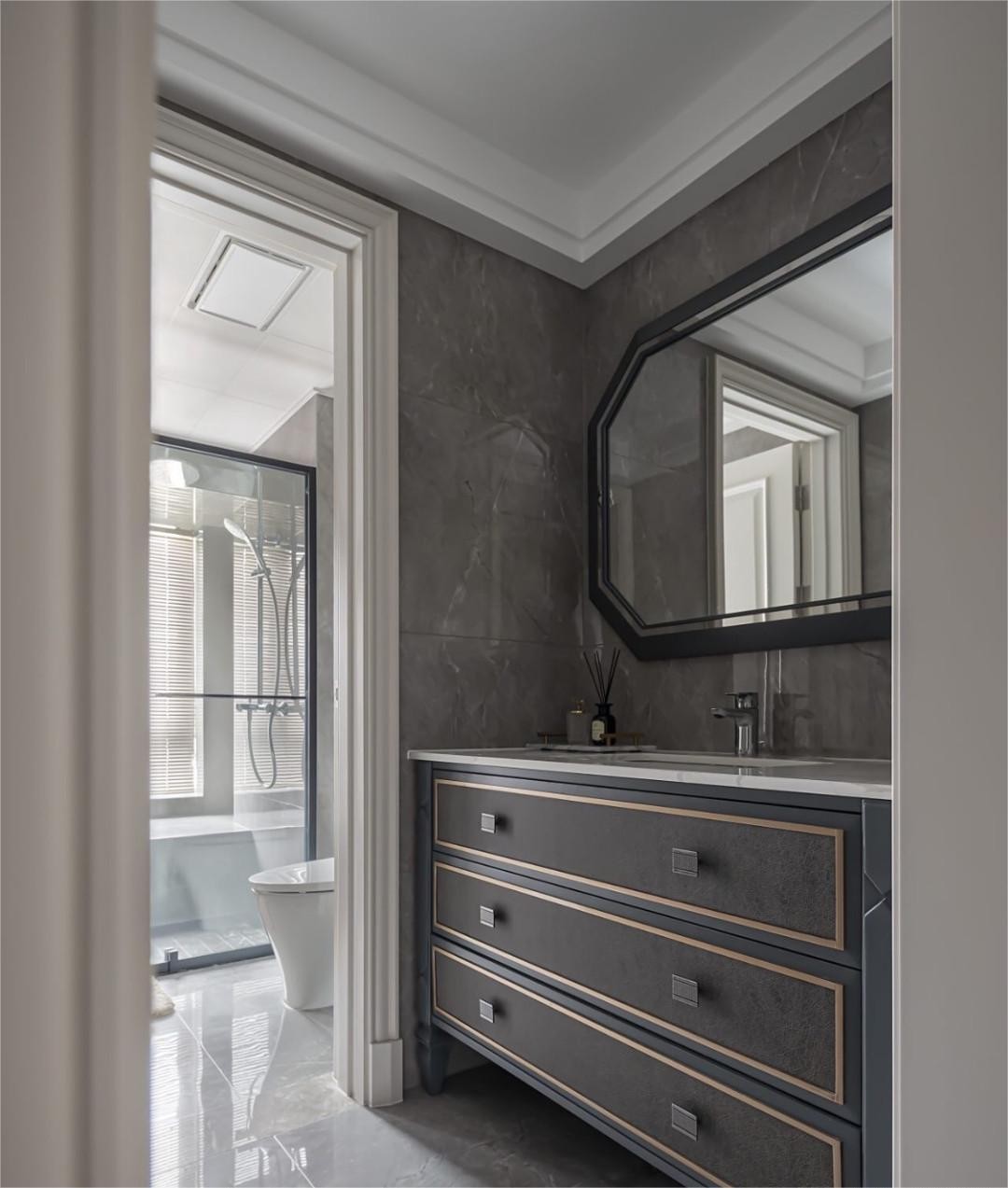 卫生间做了干湿分离,整体大理石瓷砖铺设不管从什么角度看都有时尚和精致的韵味