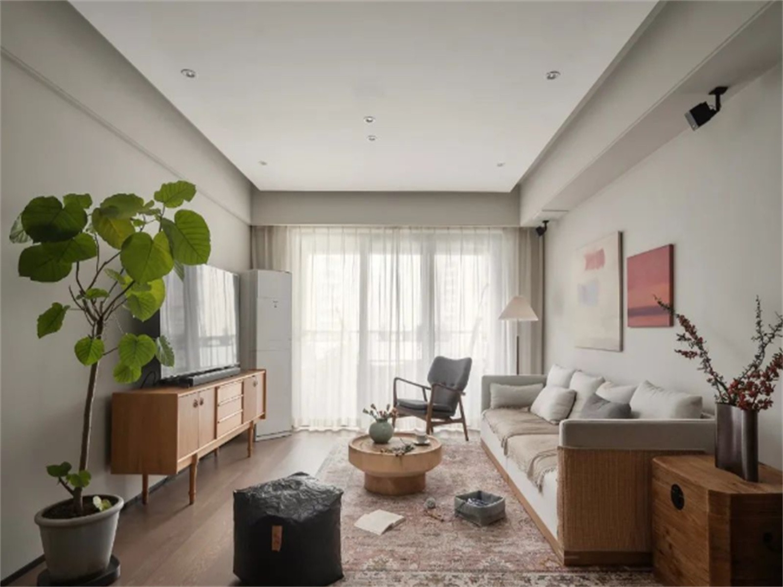 客厅,没有多余的修饰,采用最简单直接的墙漆改色为空间营造一个新的氛围感