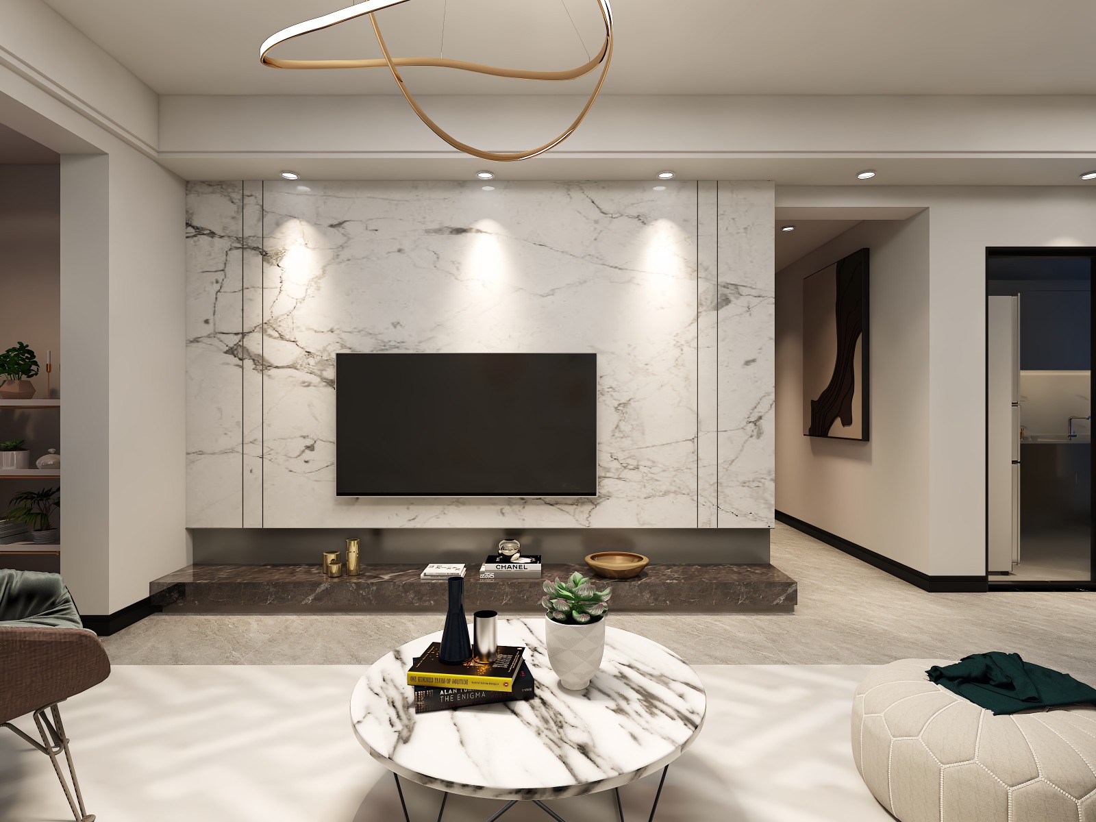电视墙用的岩板,跟电视柜一体,整体性更强,看起来简洁大方,颜色也跟整体呼应的。
