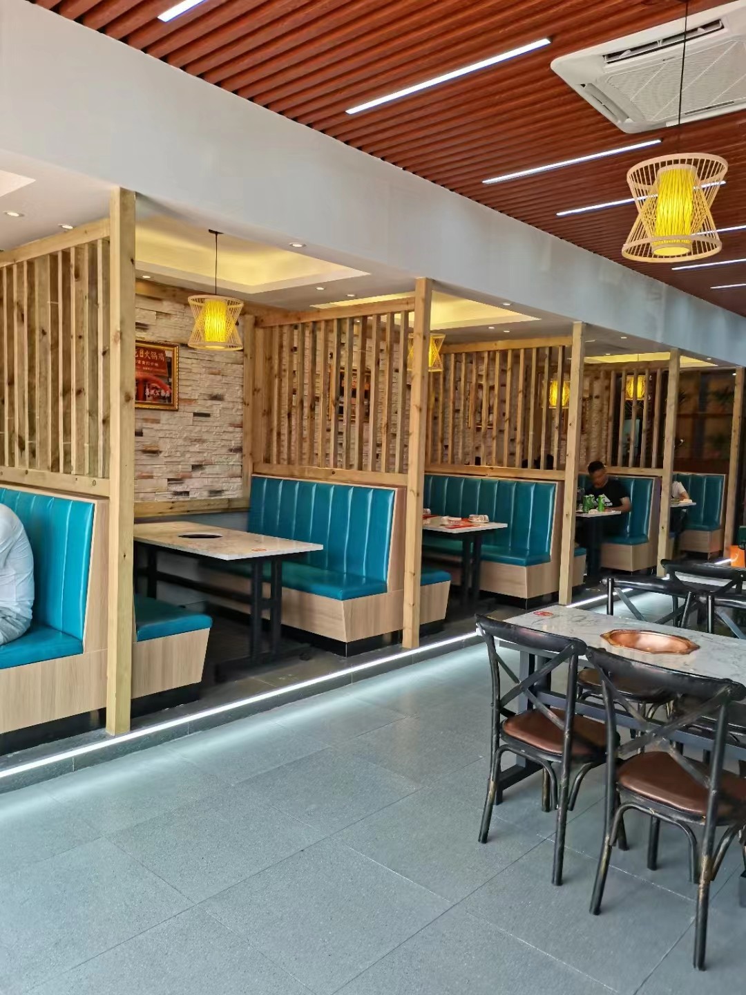 木质隔断及卡座定制文化石上墙