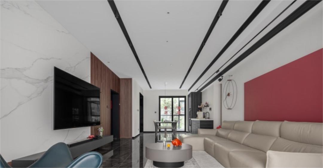 色彩作为构筑空间情绪的主力军,在这其中扮演着极为重要的作用。酒红色的造型墙借由局部点缀来为整体空间增加活力