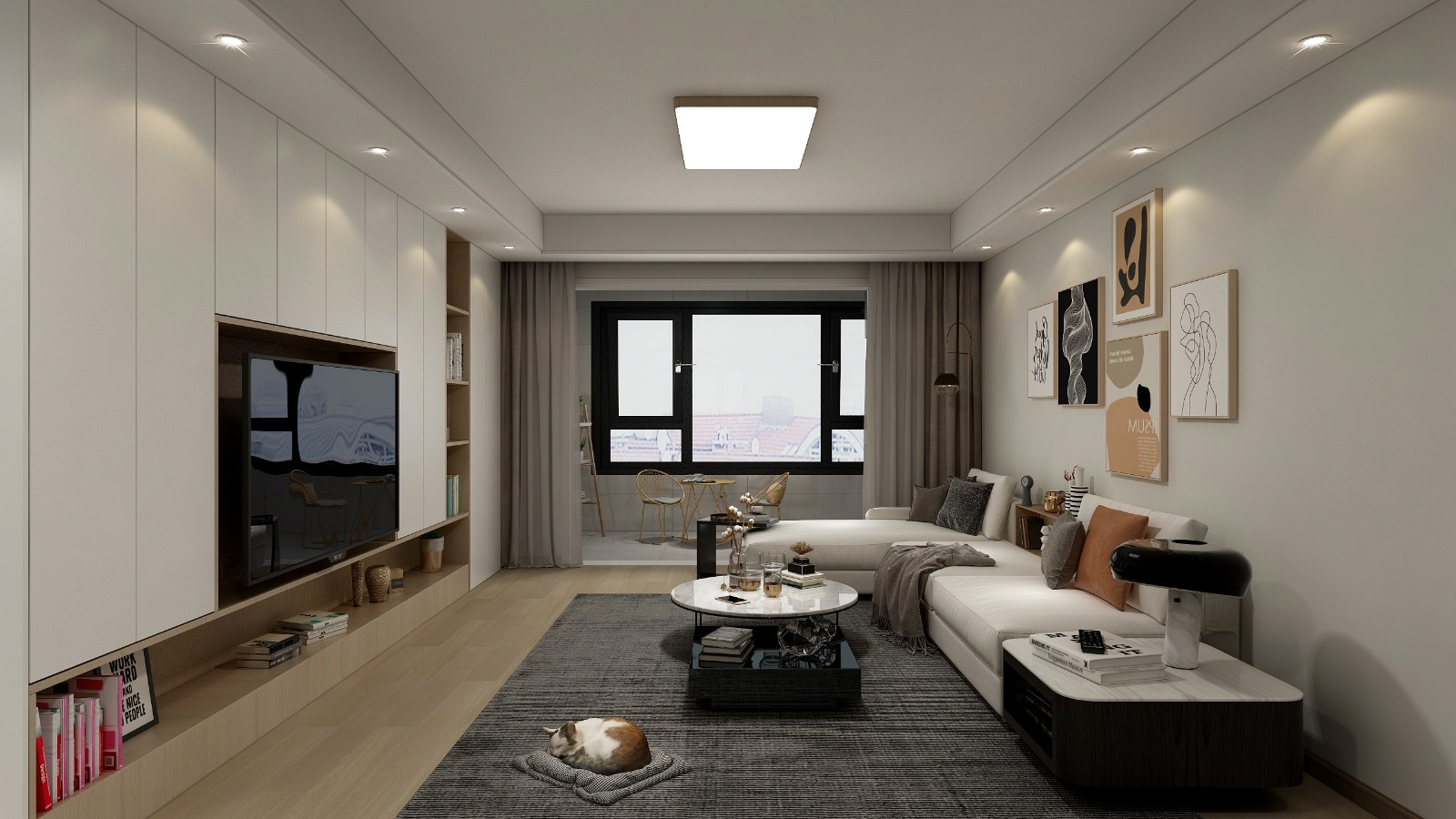 原木家具,暖色墙面,整面墙的柜子电视背景墙,好看又好用