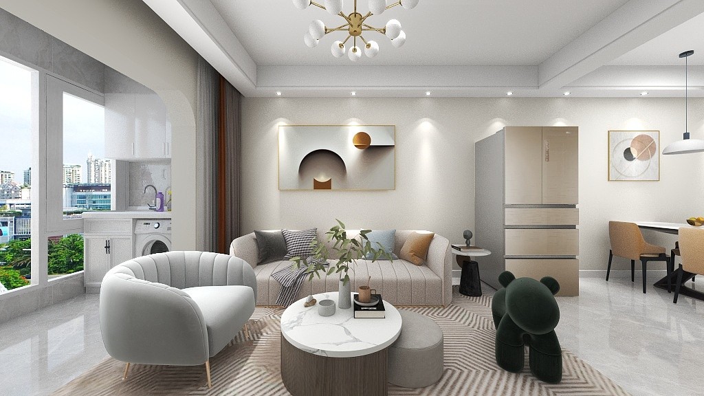 阳台打通连接客厅,客厅空间瞬间变大很多