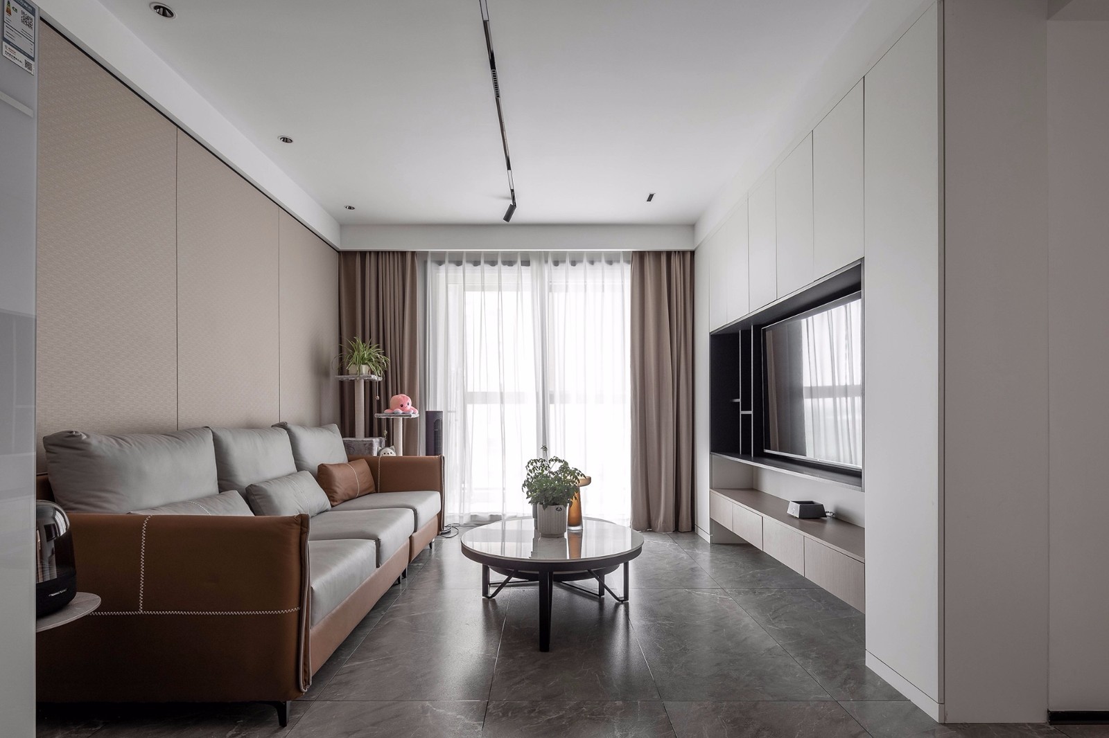 鞋柜与入户门套一体化设计,合理规划空间;将冰箱移至客餐厅区域,厨房放置洗碗机,并提高收纳性能;阳台定制一体式洗衣伴侣、转角水槽,提高空间利用率;次卧门洞移位,定制榻榻米、衣柜、书桌提高收纳性;主卧房门多出的阳角用木饰面包起,配合线性灯光作为装饰;主卧利用北边面积,完成含衣帽间、梳妆、读书功能的大套间;无主灯设计、房门到顶、极窄踢脚线等极简风格元素;结合现代风格,增强收纳和实用性,还原最真实的生活