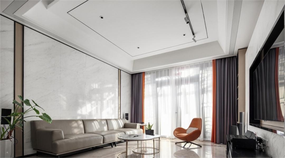 空间的点睛之笔是那一抹暖橙,彰显空间个性 摆上几盆绿植,室内便充满源源不断的自然生命力 即使蛰居,也能与家滋生更深邃的情感