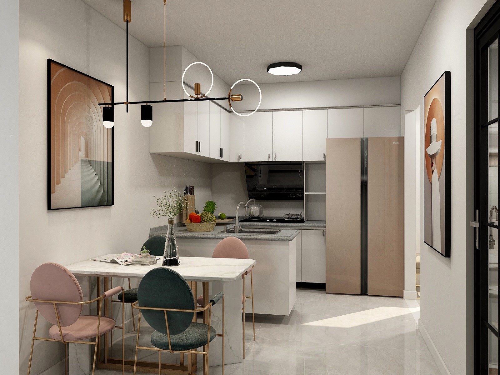 餐厅配合开放式厨房,简洁美观,方便实用。