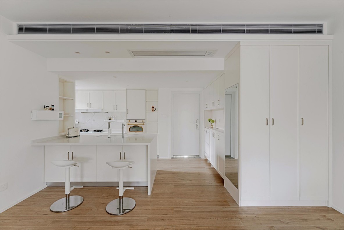 我们将原有的厨房开放出来,植入一个超大导台让整个空间更加宽敞,多人使用都不会感觉太拥挤,体验感***。日常一边做菜的同时也可以跟家人交流,与最亲密的人享受柴米油盐带来的乐趣。