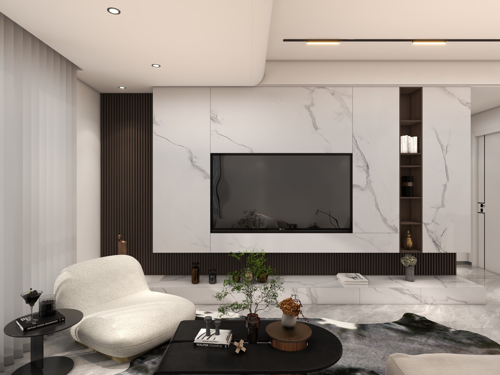 美学是通过质感和永恒的饰面实现的,而岩板电视背景墙打破传统的侄桍,于色彩本源中萃取出纯粹的色调,岩板的褐与质感的灰,在巧思之下,融合成为一种低调的肃静,与不引人注目的美好,这就形成空间电视背景墙的主色调!