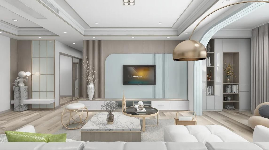 客厅设计偏向现代设计,颜色搭配充满活力,增加了客厅的采光