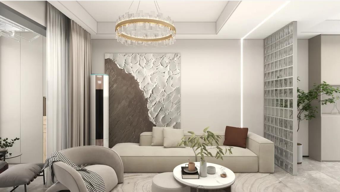 客厅设计采用奶油风设计,整体比较趋于温馨舒适