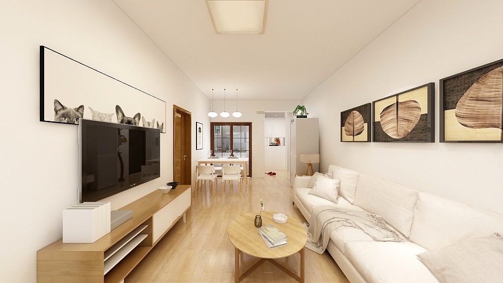 温馨的奶白色沙发配上原木色的硬装,很舒适很安逸。