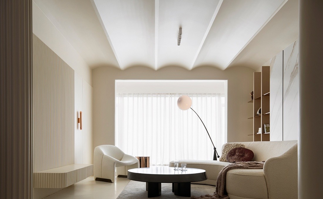 客厅作为家中使用频率***的休闲空间,更加注重舒适度与氛围感。波浪造型顶、围合型沙发、趣味茶几,一个由线条构造的闲谈品茶处由此诞生。