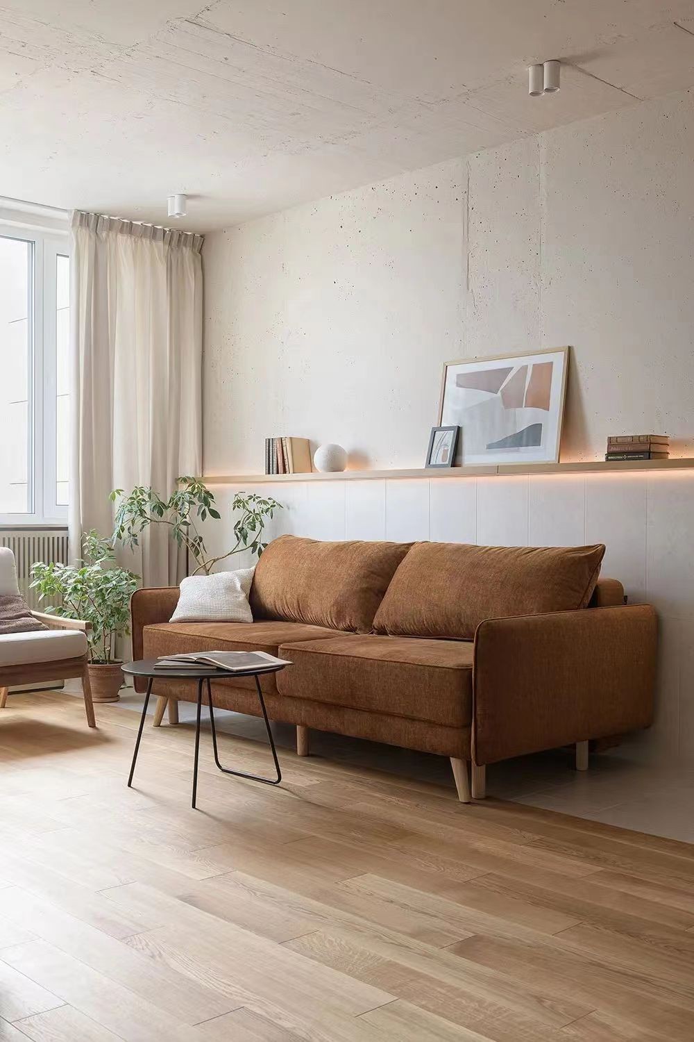 沙发后边制作层板,可以简单用作植物功能。