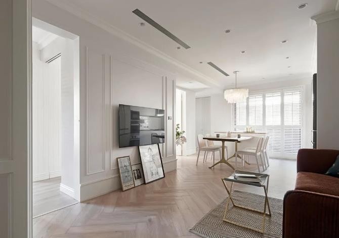 标准的二房一厅,但因为房屋面积,让客厅和主卧具有大面积。住户是一对夫妻,喜欢美式的风格样式,我们也进行设计让房屋的收纳能力加强。