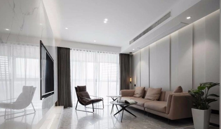 客厅本着极简的风格来定义,全屋无主灯设计。电视背景墙大理石上墙,是不是很有***感