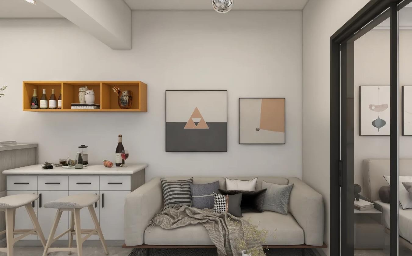 这是一个以暖色调为主的极简公寓,空间比较小