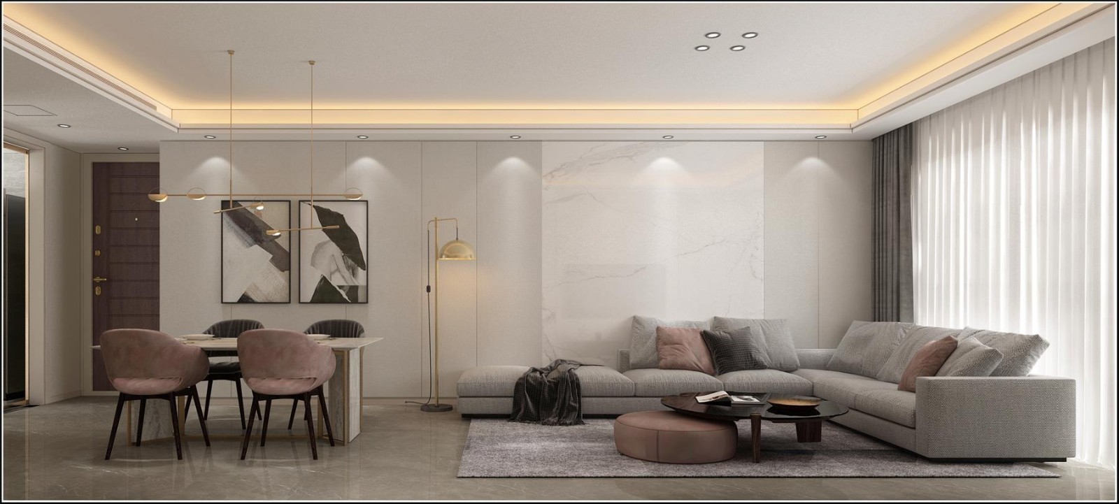 空间更具有整体性。硬包与大理石的结合,提升空间质感的同时也不失温馨感。