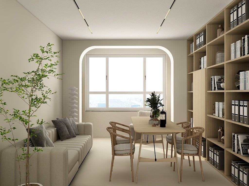 空间采用流线型设计语言,将狭长起居空间做了柔性的处理。长阳台一分为二,保留了一个家政间之后,让出空间划到起居室的一偶,阳光任性射入,让生活呈现出随性的气息