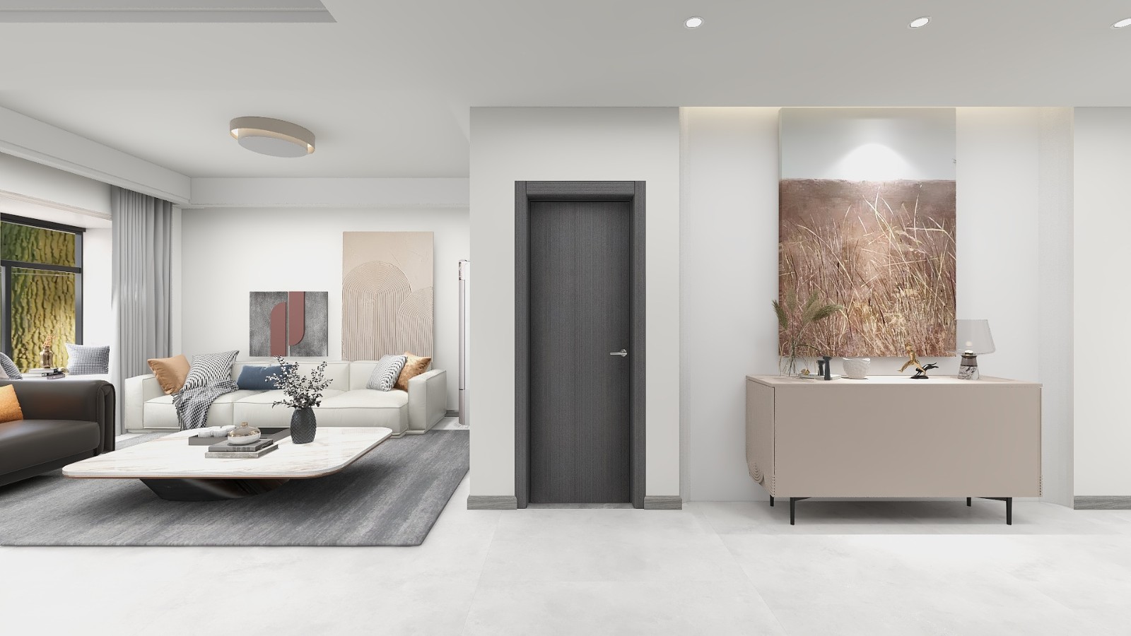 门厅,视觉缓冲,装饰和小的收纳需求