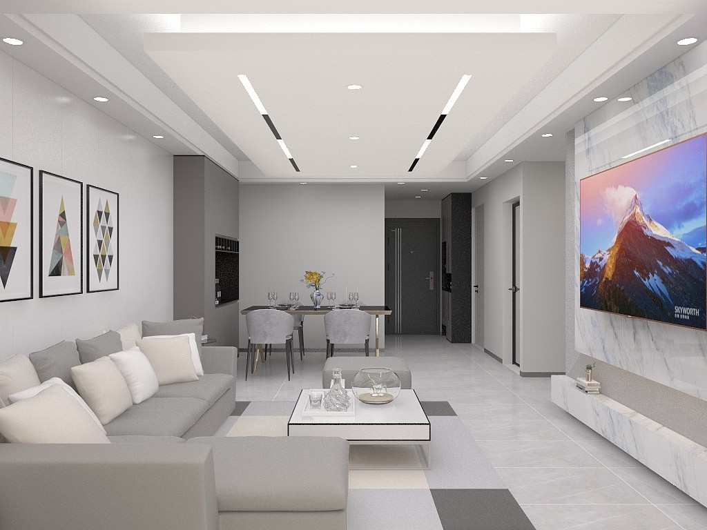 客厅作为人们日常活动的主要场所,色彩应以典雅、明朗、整体感强调的浅色调为主,局部可有一些色彩变化,或深、或浅,这样易产生舒畅、明快的环境氛围,但要与天花板、墙体及地板的色彩搭配合理