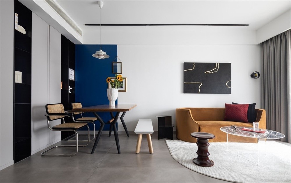 家具的选择上将现代北欧和中古家具相融合,来增加空间的丰富感,这也是设计师想要表达的:虽然是现代北欧但有过去的味道,墙面用到的是嘉宝莉涂料,绿色环保,安全放心