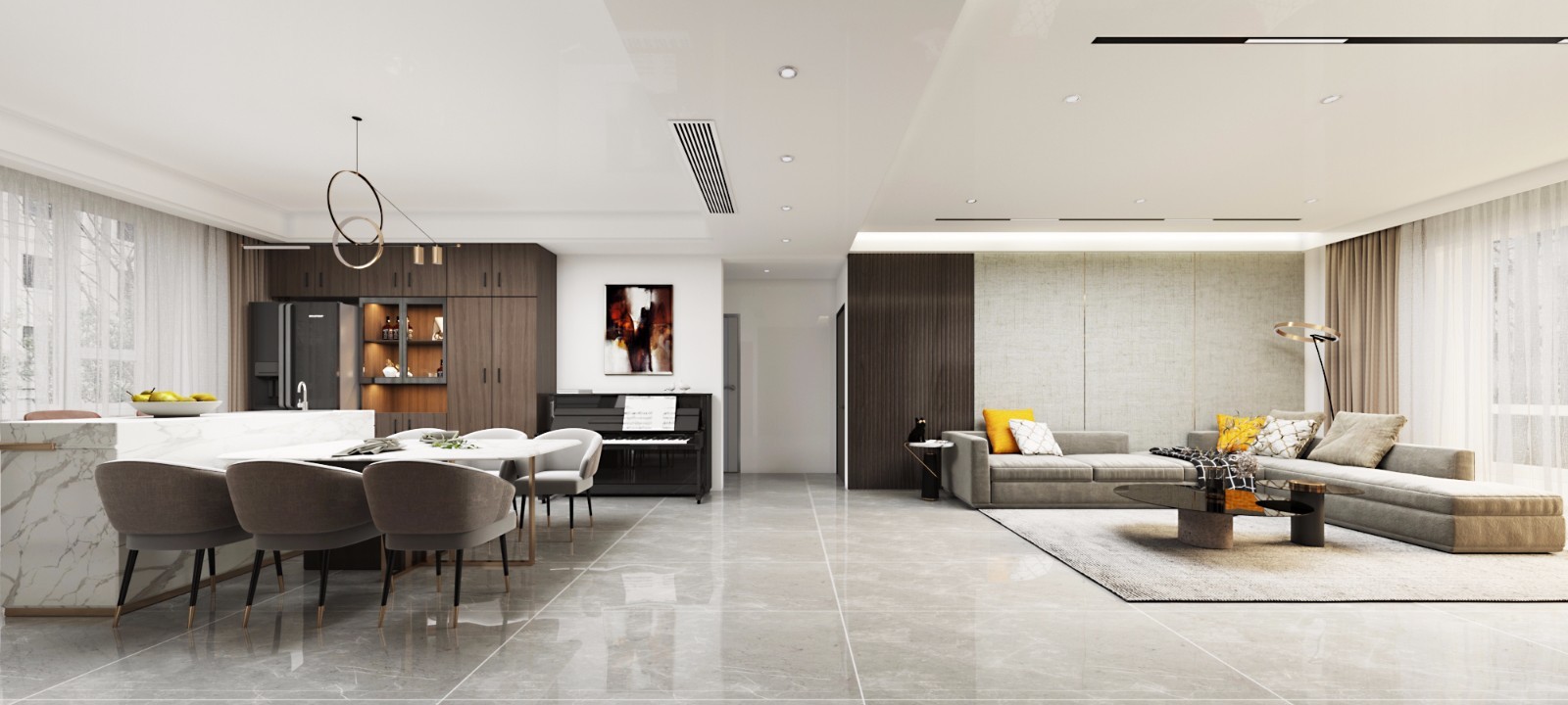 整体布局方面着重于餐厨空间的改造,在让尺度合理舒适的同时增加了钢琴的位置,卫生间的重新划分提升了两个卫生间的使用感受。