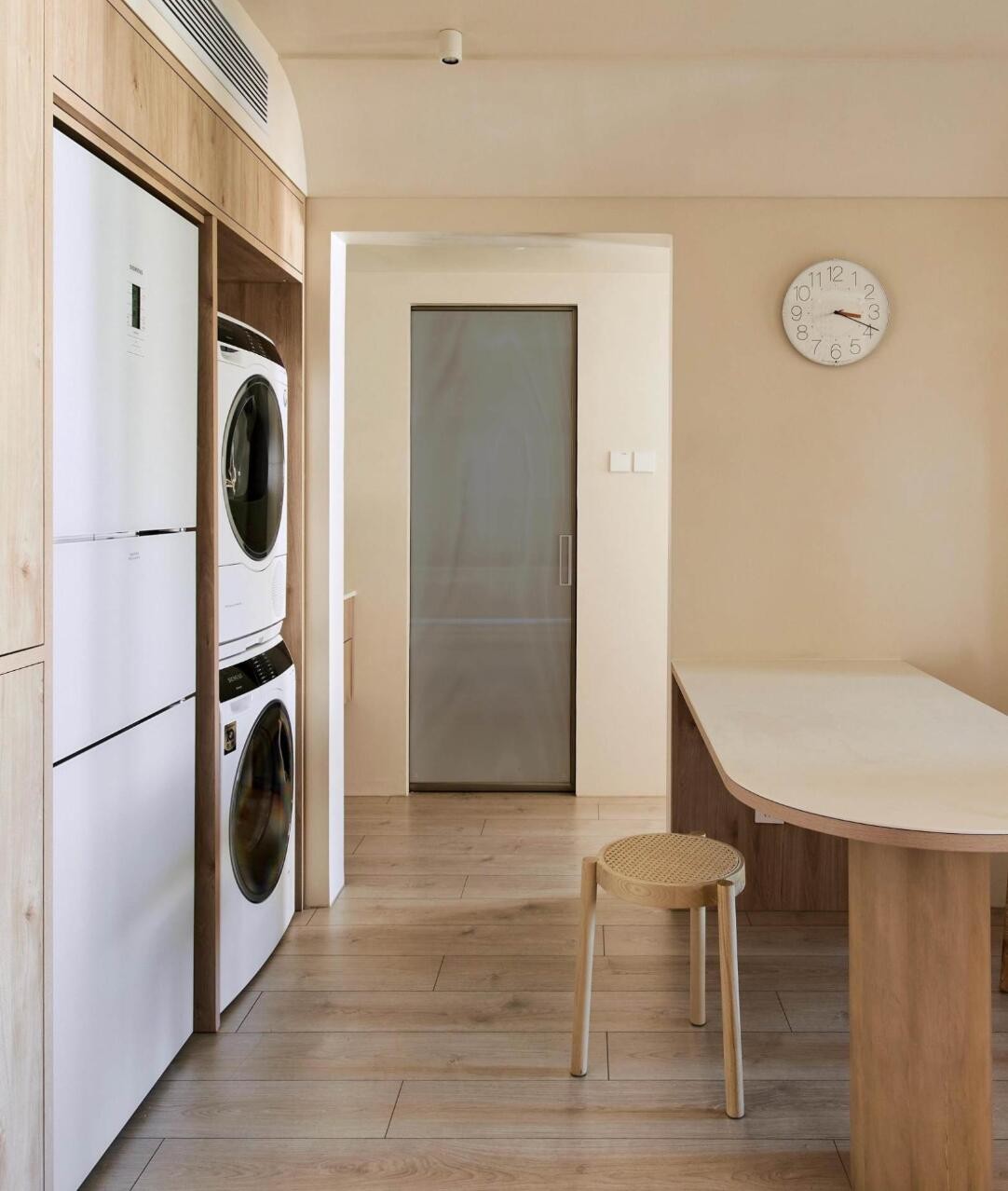 事实上,主人家并没有真正意义上的客厅,而是以功能性来弥补空间需求。 例如,餐桌兼具就餐、办公和互动等功能。 虽然不如传统客厅舒适,但即使是有限的户型,也是最平衡的。